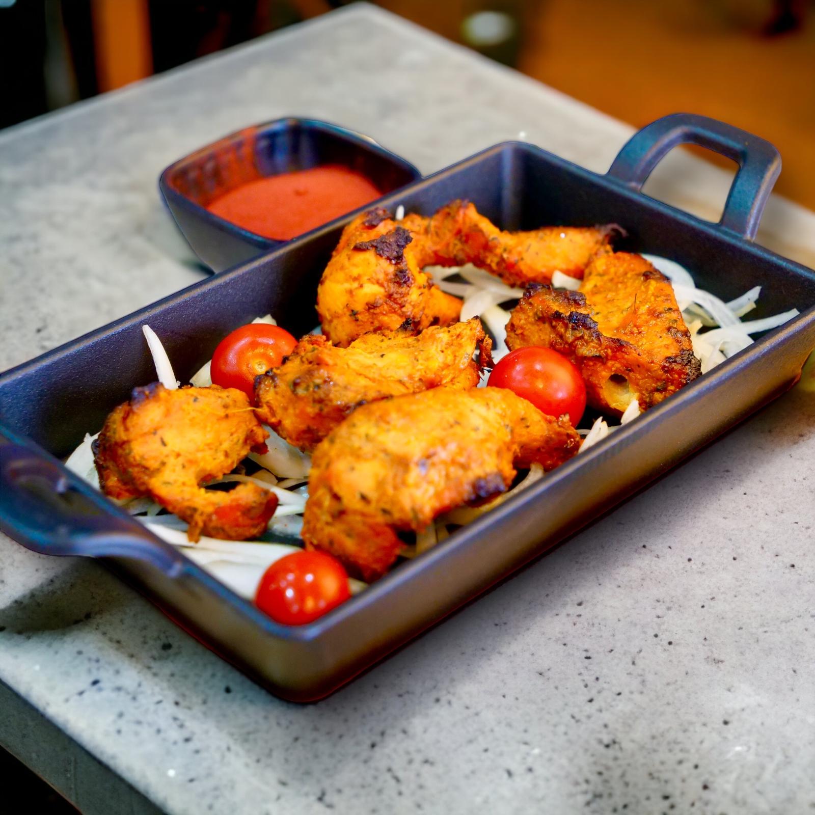 MORCEAUX DE POULET MARINÉS, ÉPICES ET CUITS AU TANDOOR